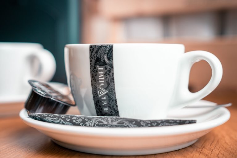 Van de papieren koffieverpakking, rietsuikersticks tot en met het zwarte servies.